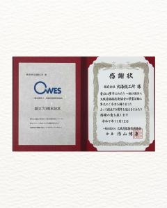 北海鉄工所 2025.11.12 大阪府溶接技術協会から表彰されました 2025年11月12日 先日開催された「大阪府溶接技術協会70周年記念式典及び祝賀会」において、長年にわたり溶接技術の向上と技能鍛錬の場として協会活動へ協力した功績が認められ、当社が表彰されました。 今後も溶接技術の向上と、技能者の育成に貢献してまいります。