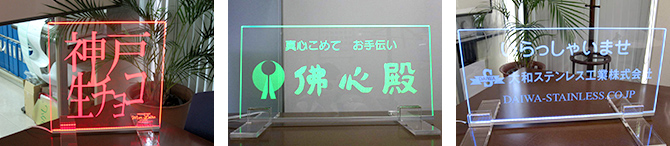 高品質なLED照明および高透過ガラスを使用した導光板サインです。 各企業様、店舗等の受付サインから、外看板等のサインなど、あらゆるシーンでぜひご活用ください。